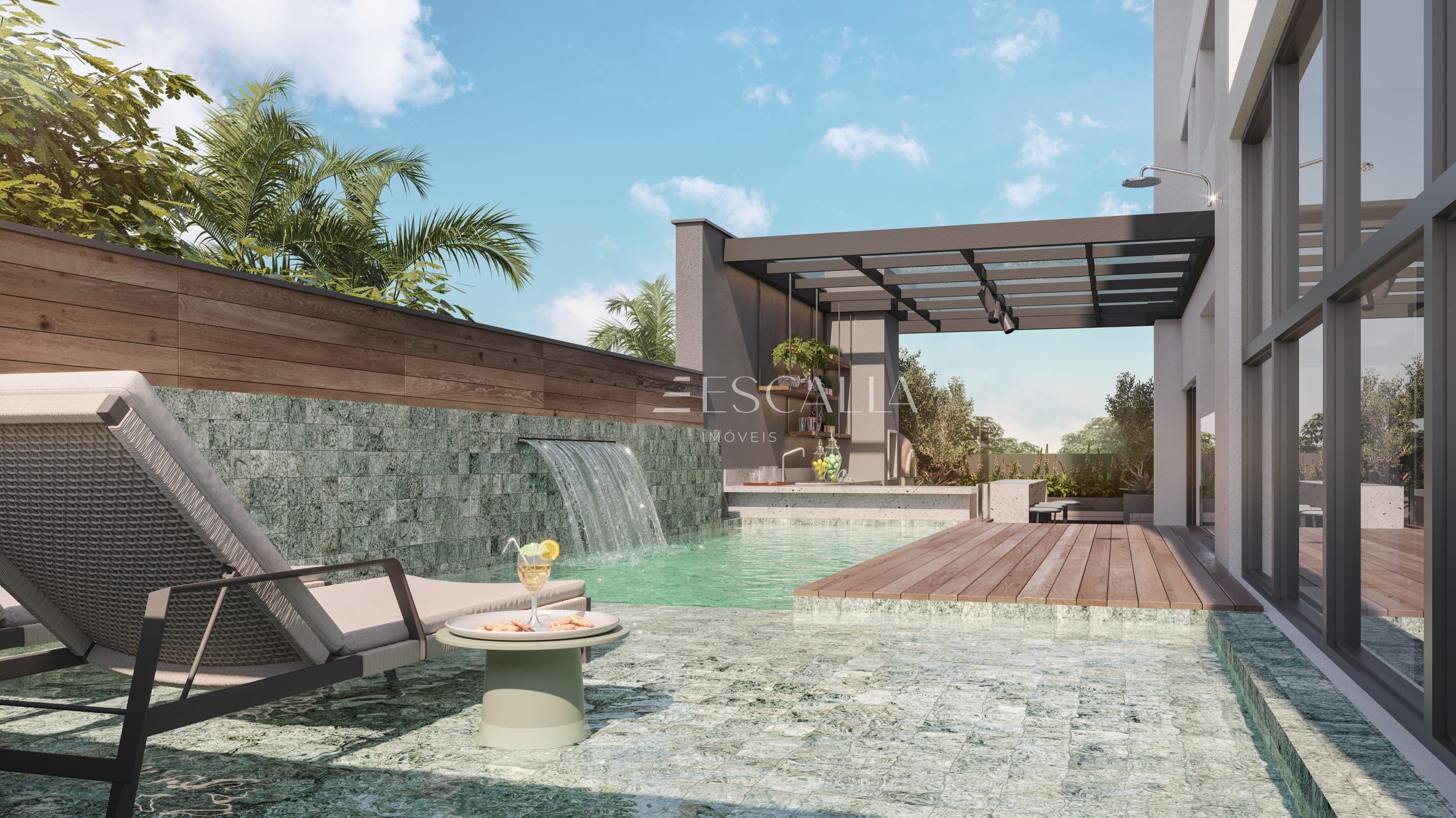 – Piscina adulta com bar molhado e piscina infantil estilo prainha