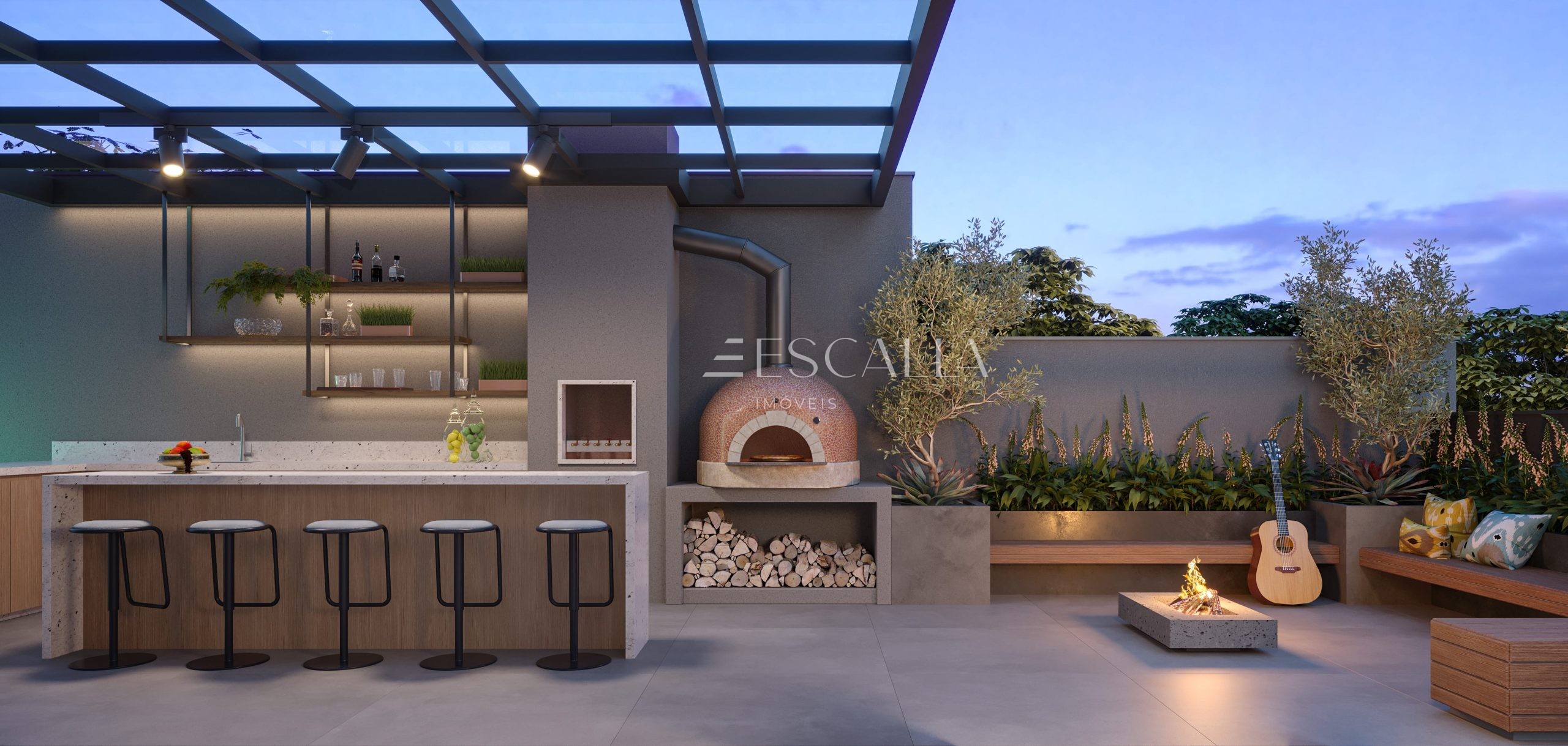 – Espaço gourmet ao lado da piscina com churrasqueira e forno de pizza