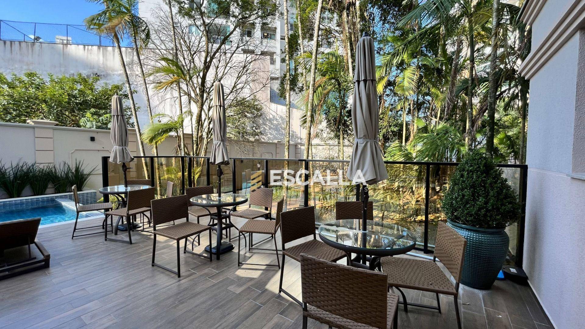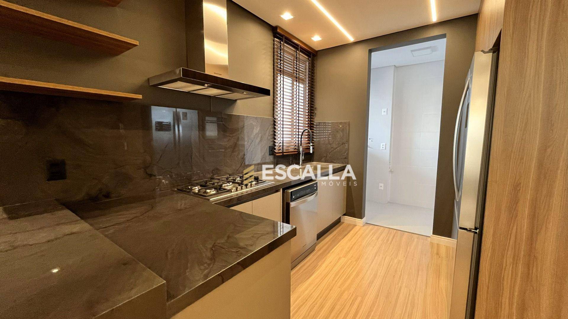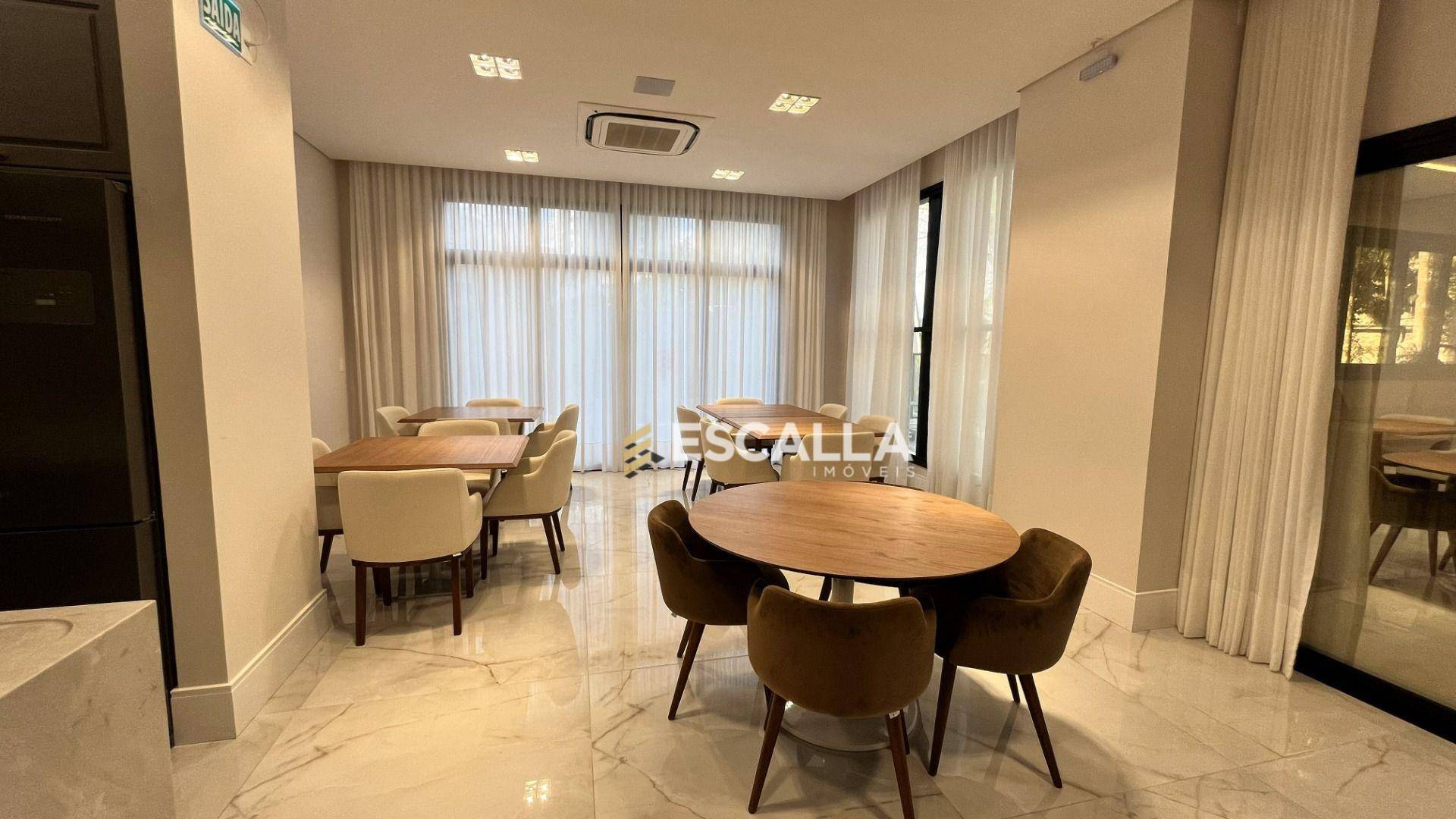 O apartamento possui área privativa de 121 m² e conta com 3 suítes, cozinha, sala de estar e jantar integradas, lavabo e uma ampla sacada com churrasqueira.
