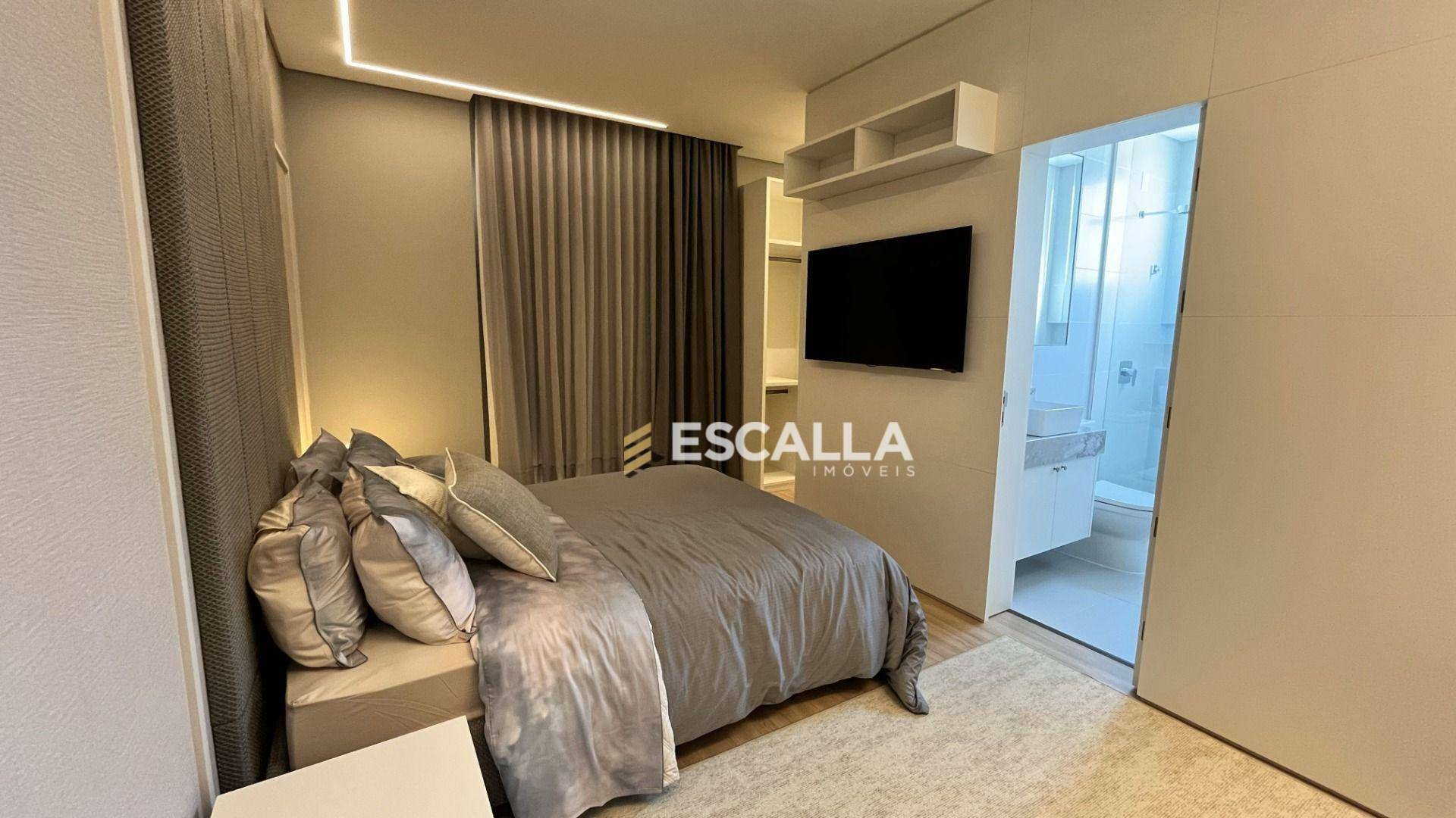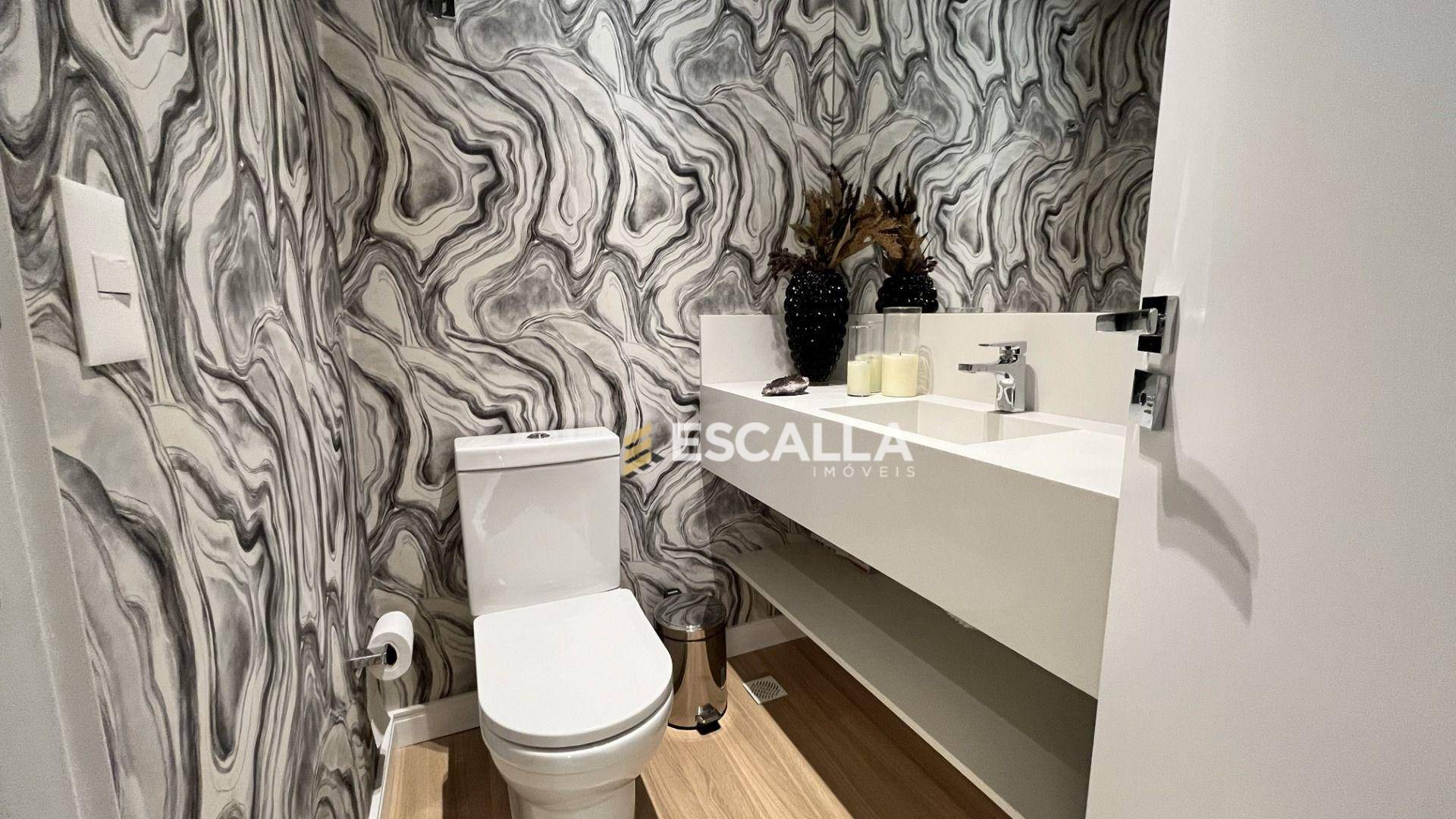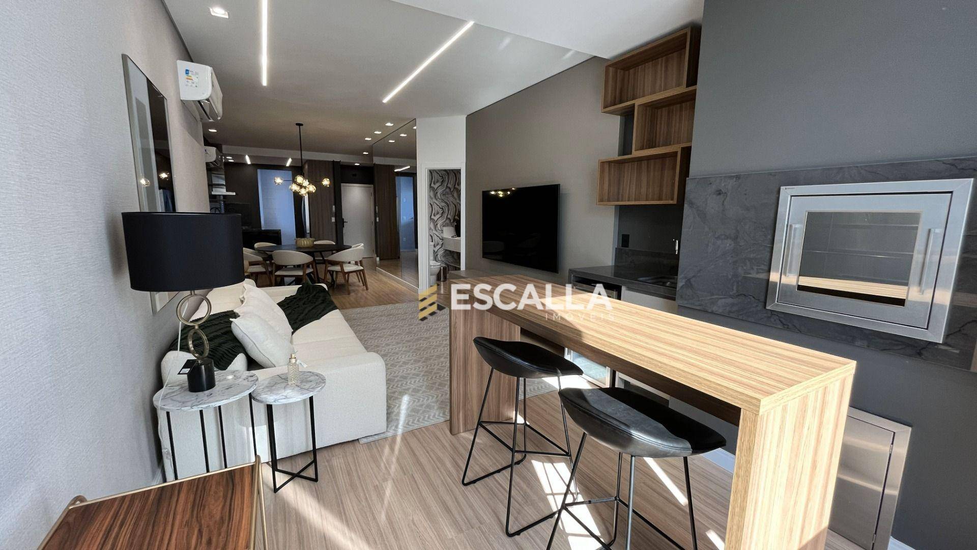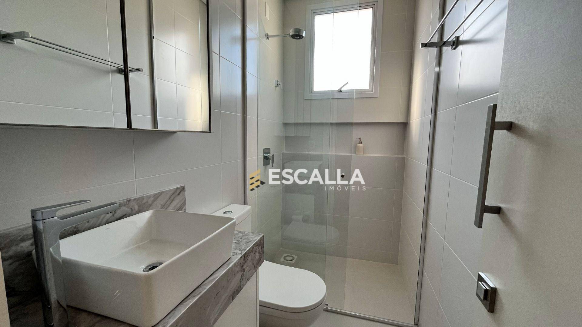 O apartamento possui área privativa de 121 m² e conta com 3 suítes, cozinha, sala de estar e jantar integradas, lavabo e uma ampla sacada com churrasqueira.