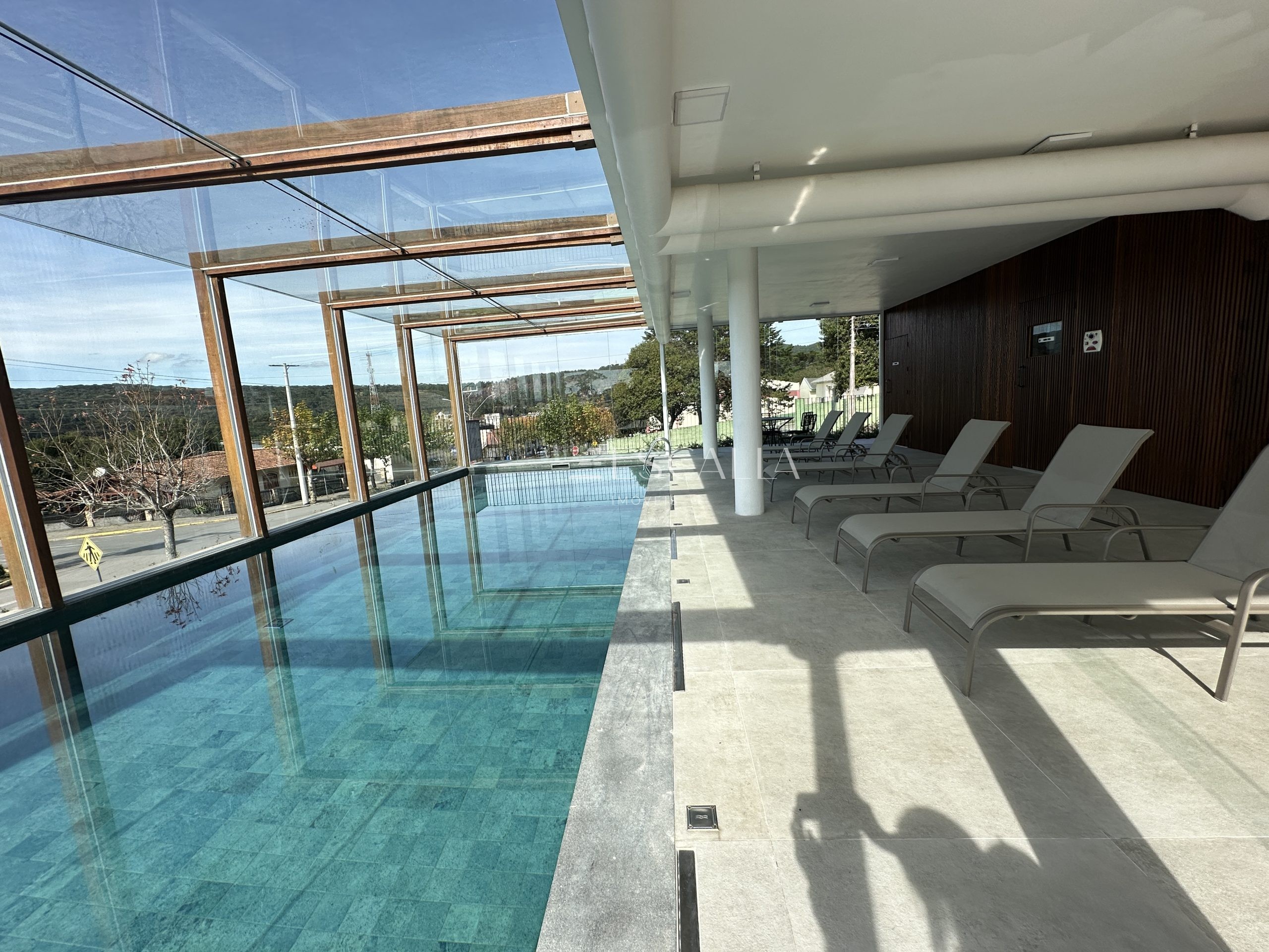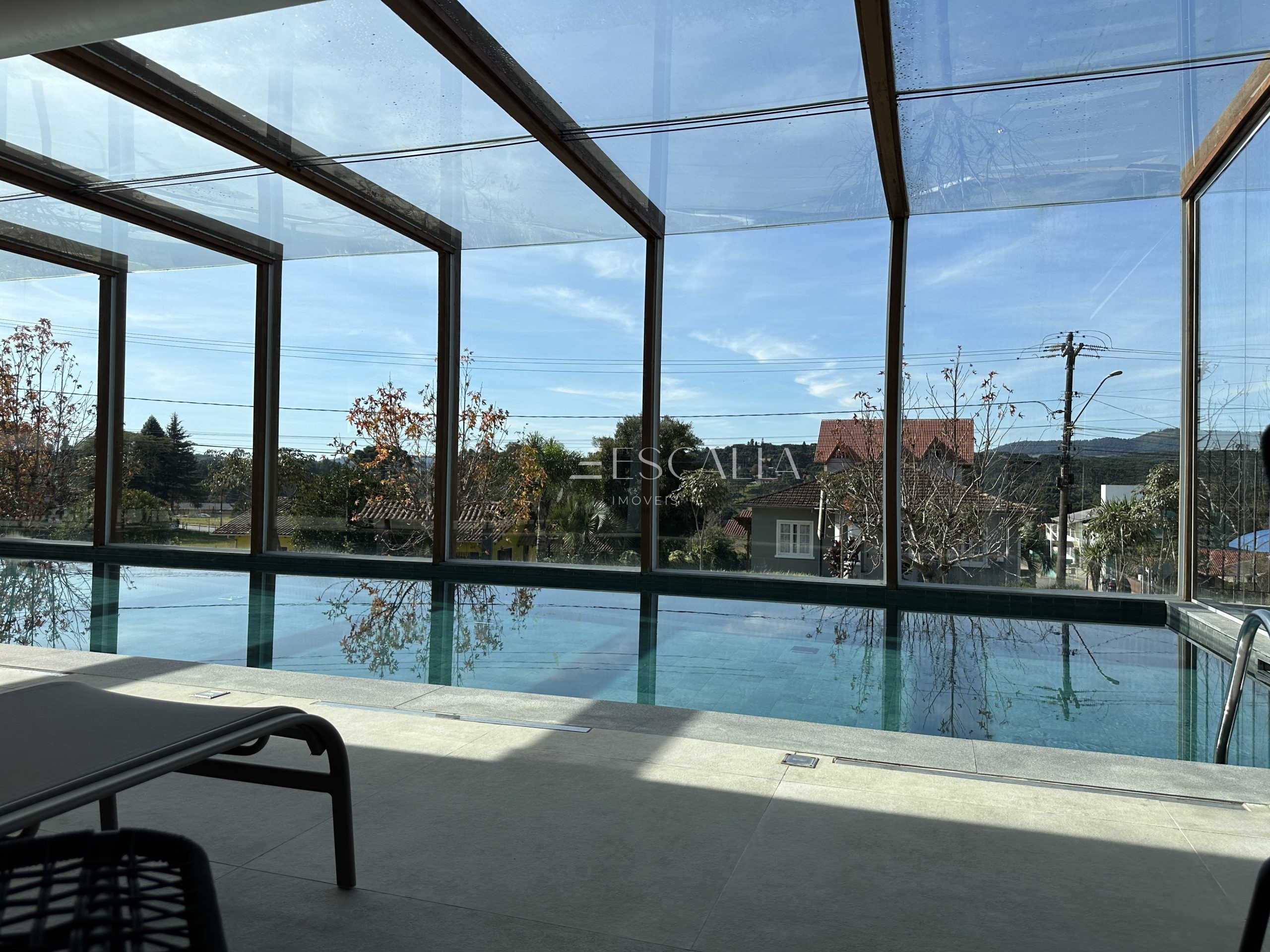Lazer: Piscina coberta e aquecida, outdoor living com lareira, sauna seca