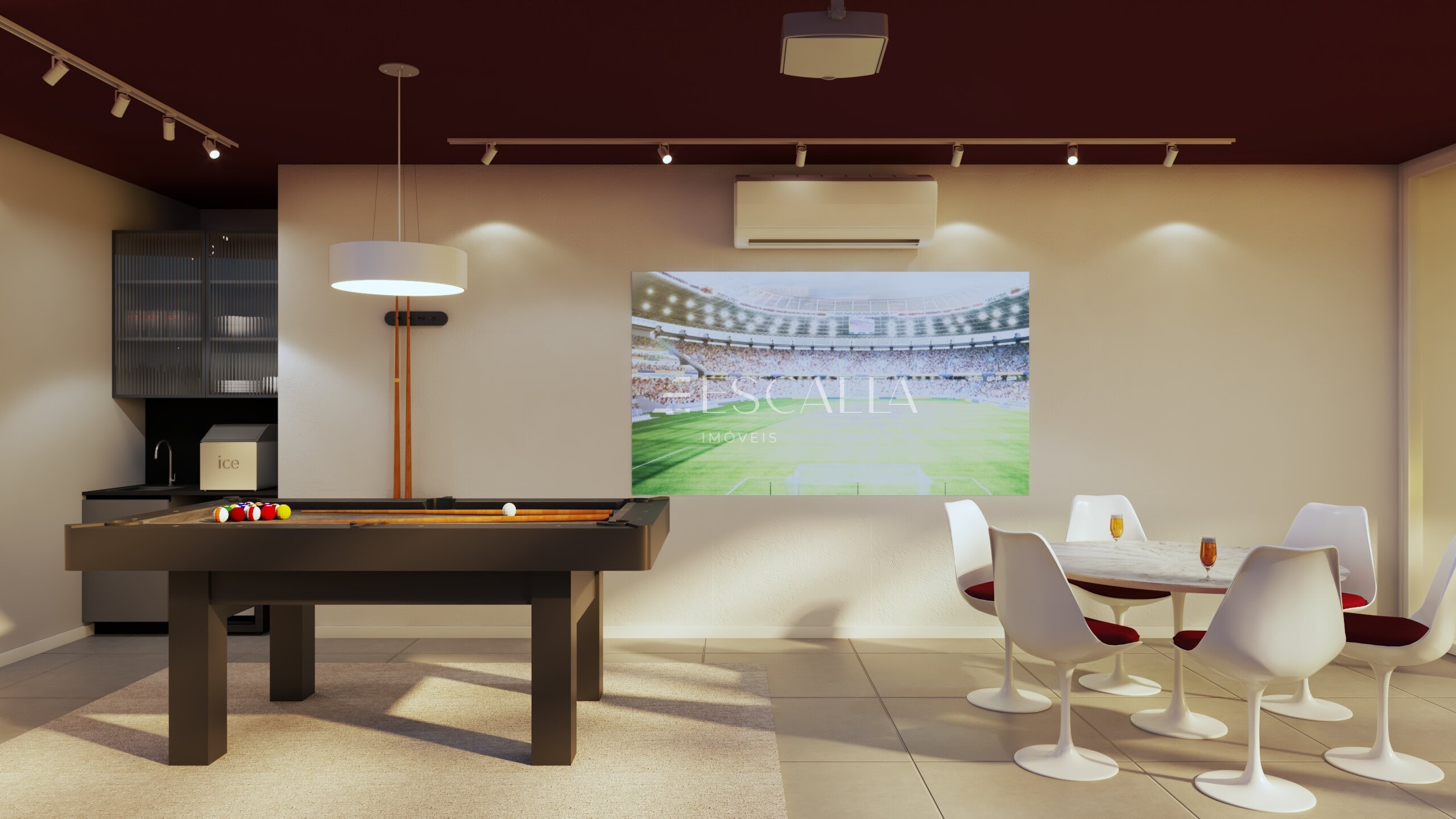 Drink bar no rooftop com projetor, perfeito para momentos de lazer