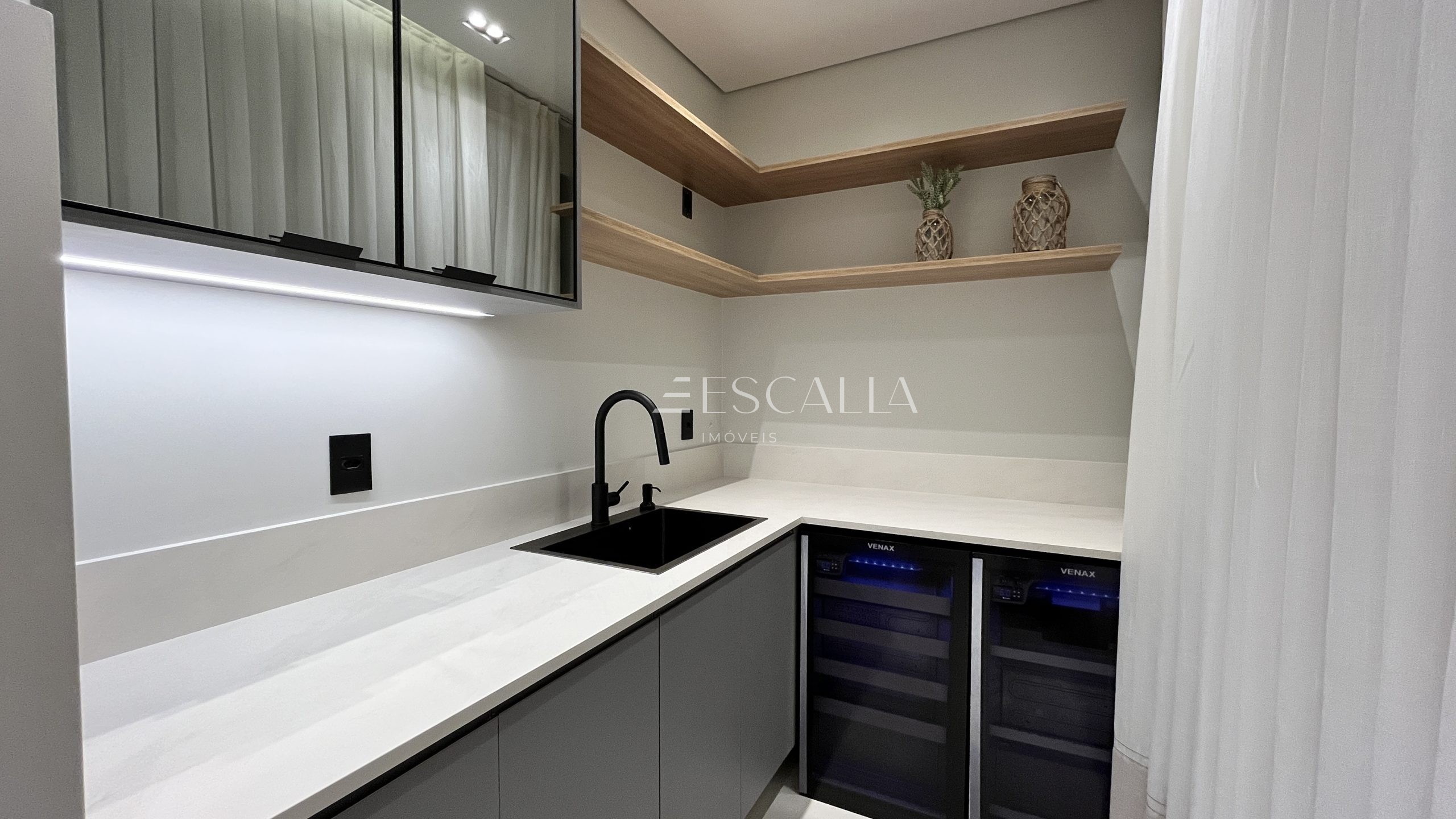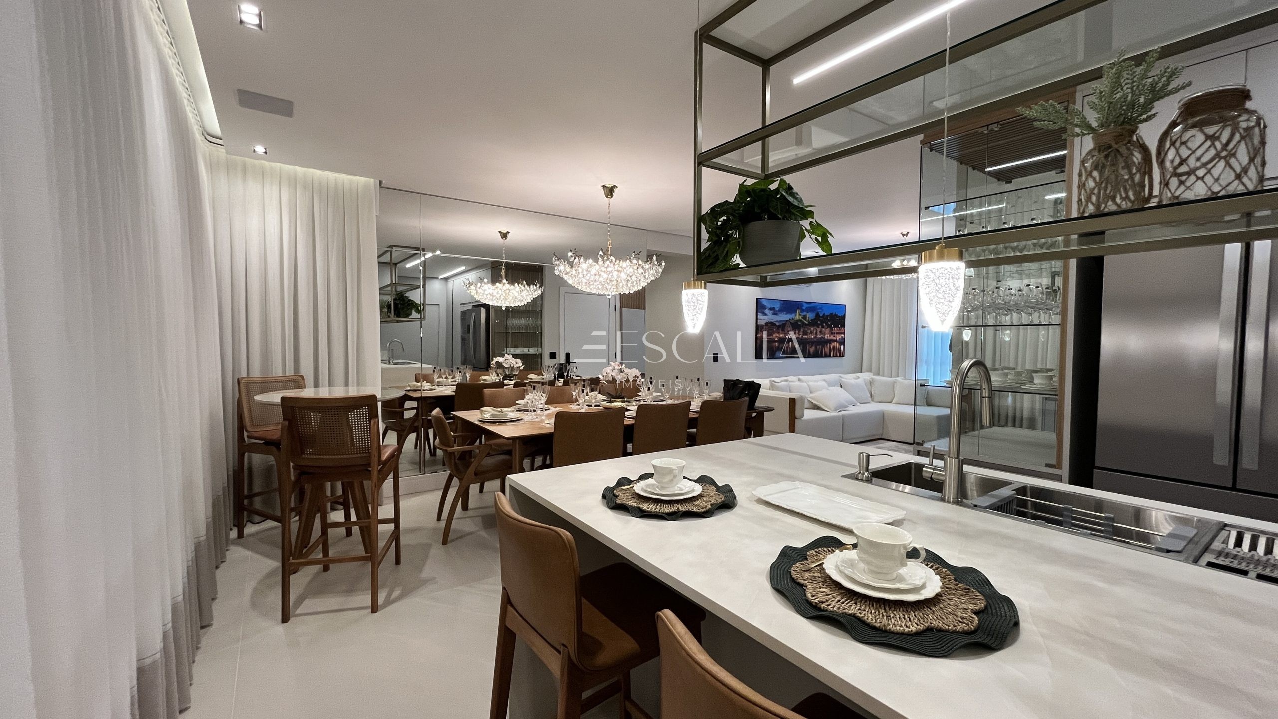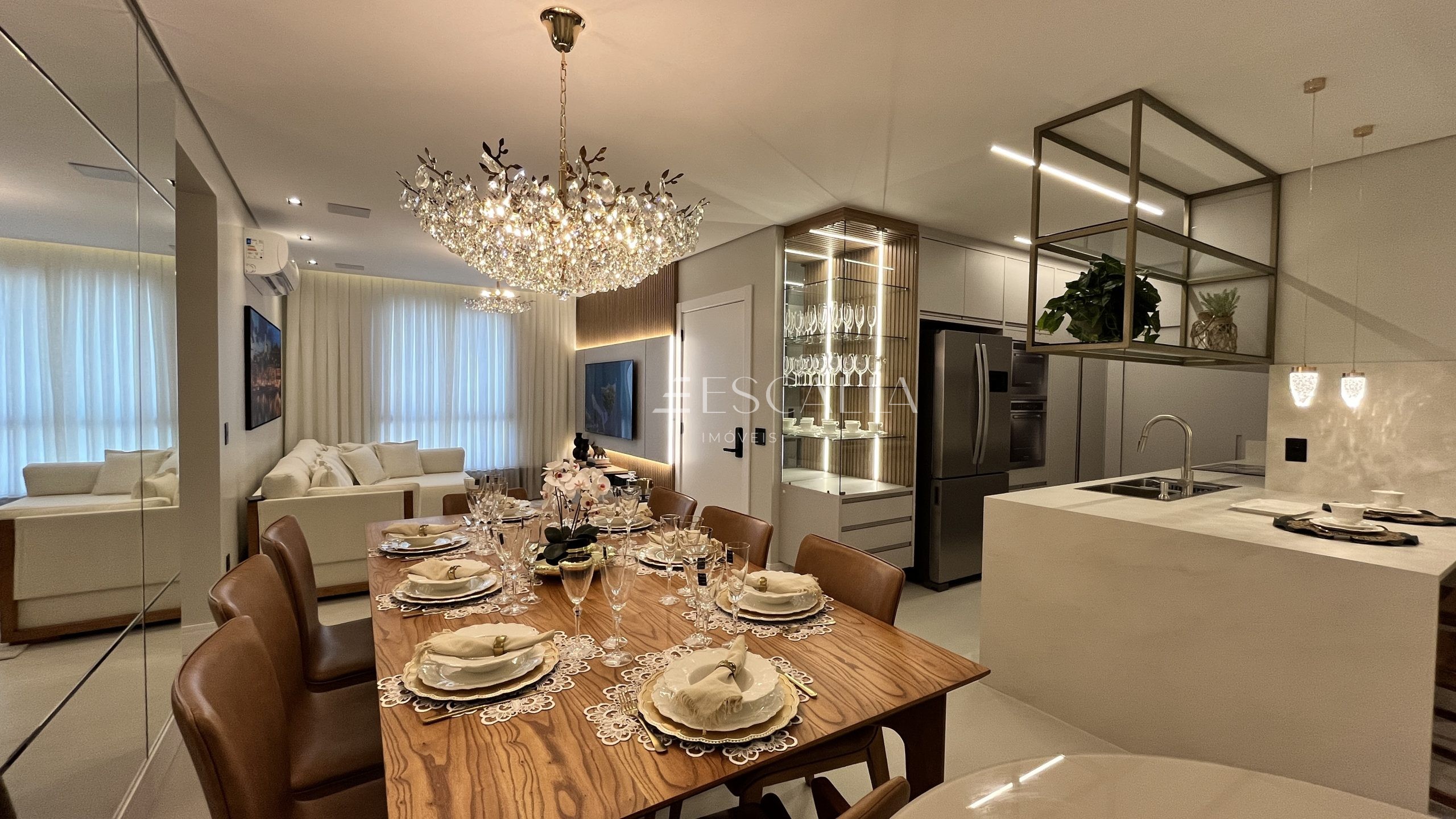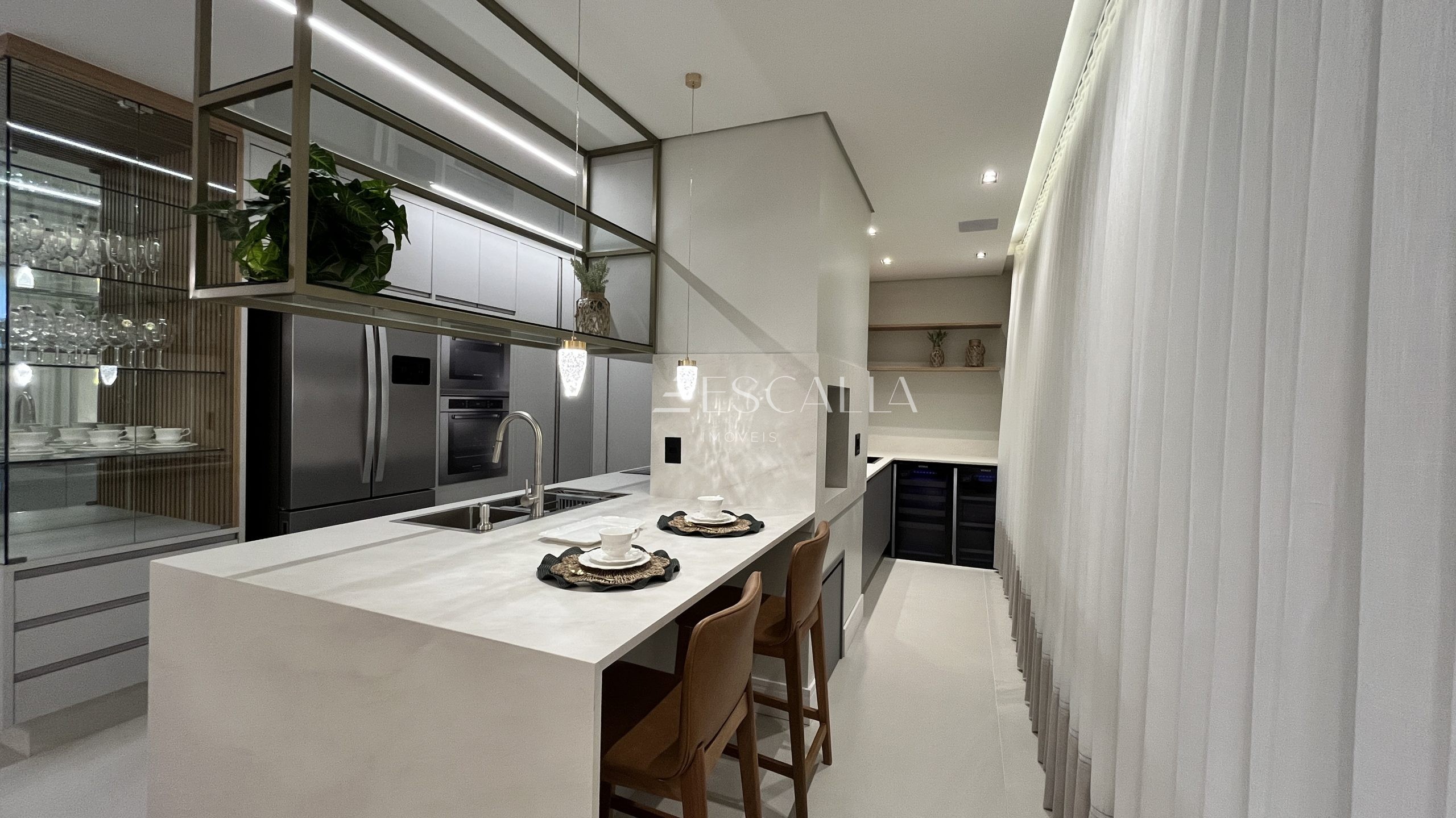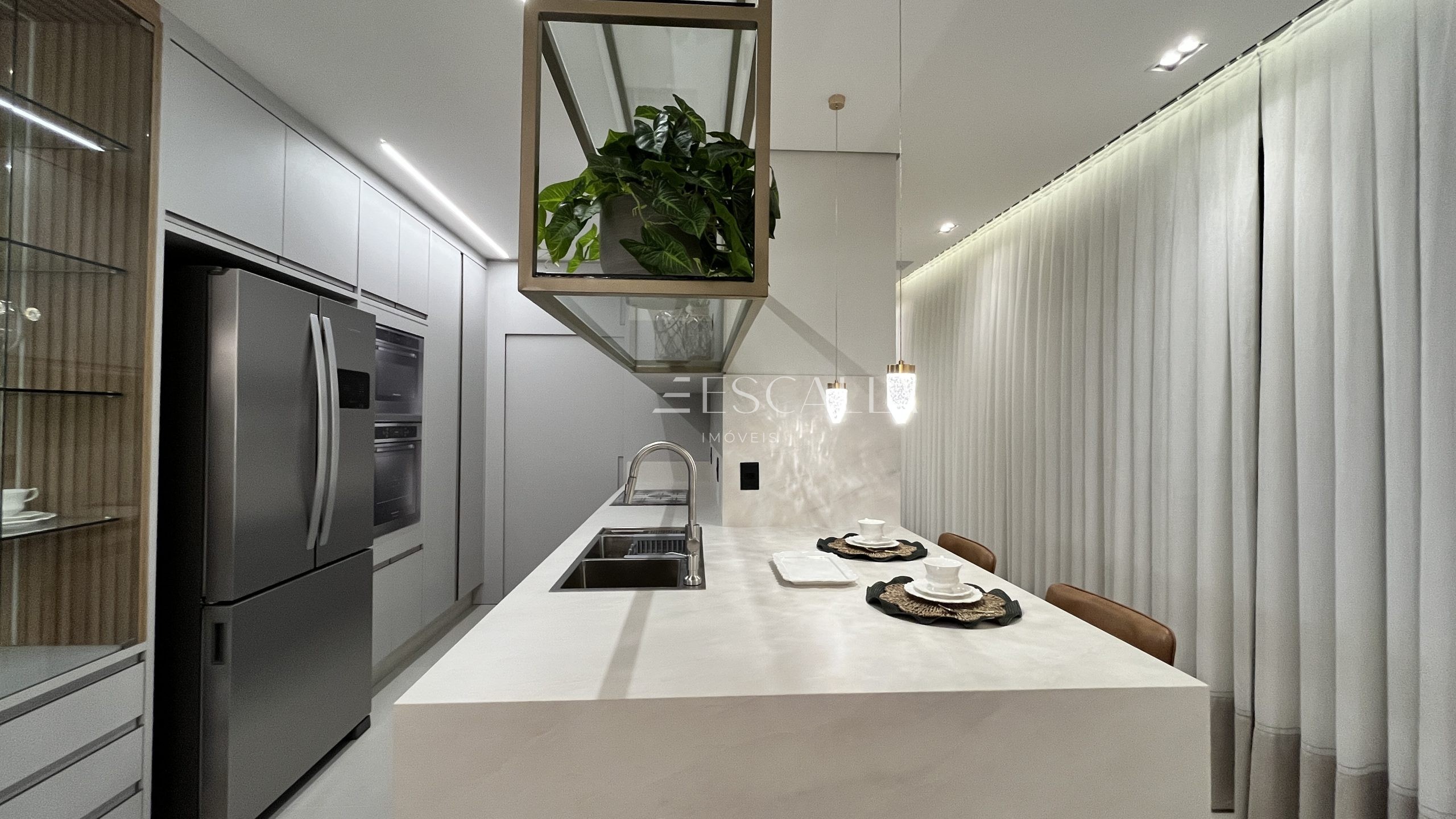 Sala e Copa Integradas: Ambiente espaçoso e convidativo, perfeito para momentos de convívio e entretenimento.