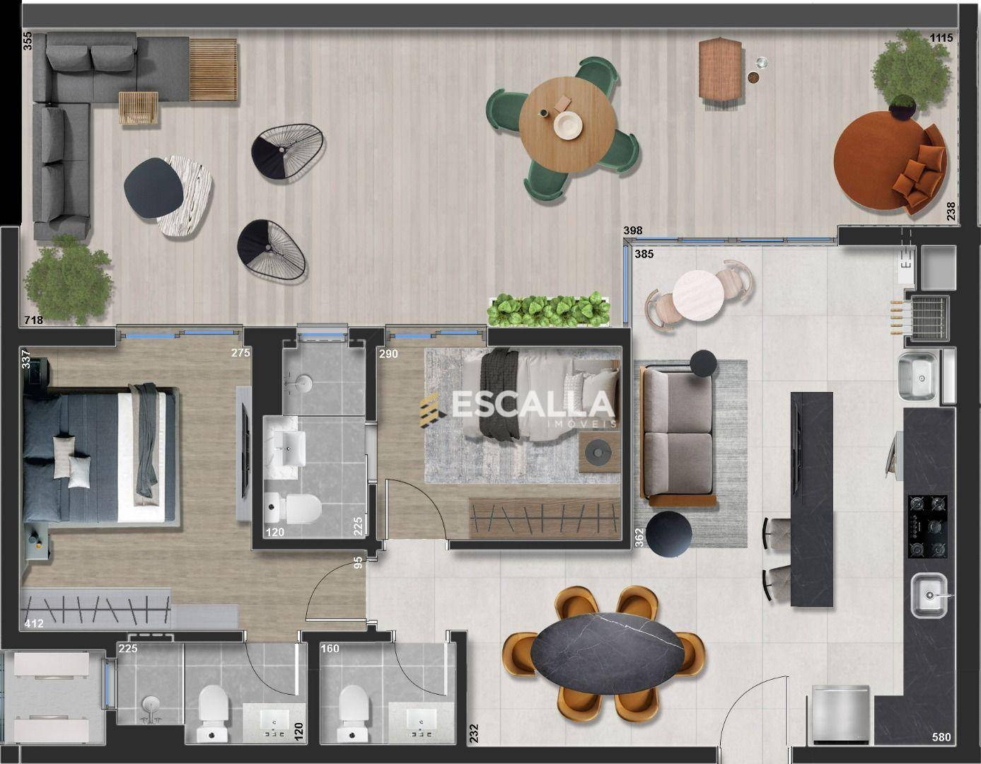 Apartamento de 77m² com 1 suíte + 2 dormitórios;