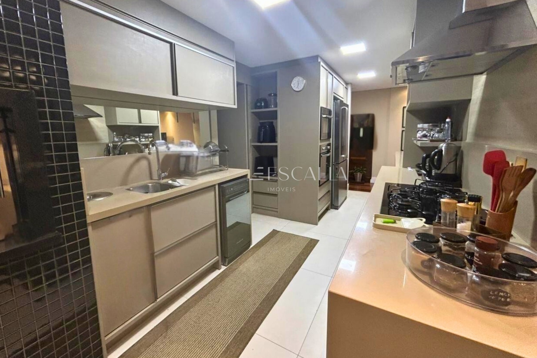 Cozinha funcional, equipada com armários planejados