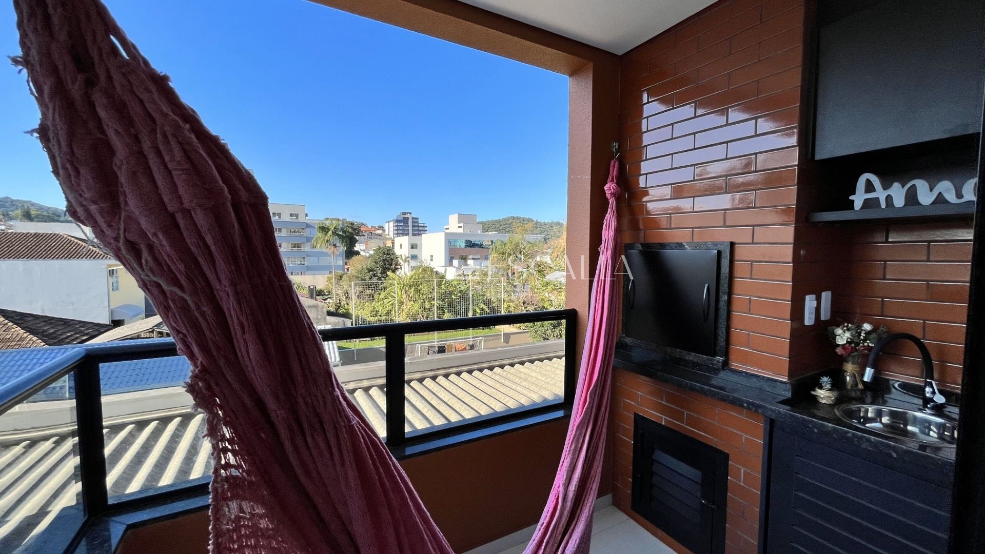 A sacada, com churrasqueira, é um espaço ideal para momentos de lazer e confraternização. Você poderá desfrutar de momentos agradáveis ao ar livre, realizando churrascos e apreciando a vista.