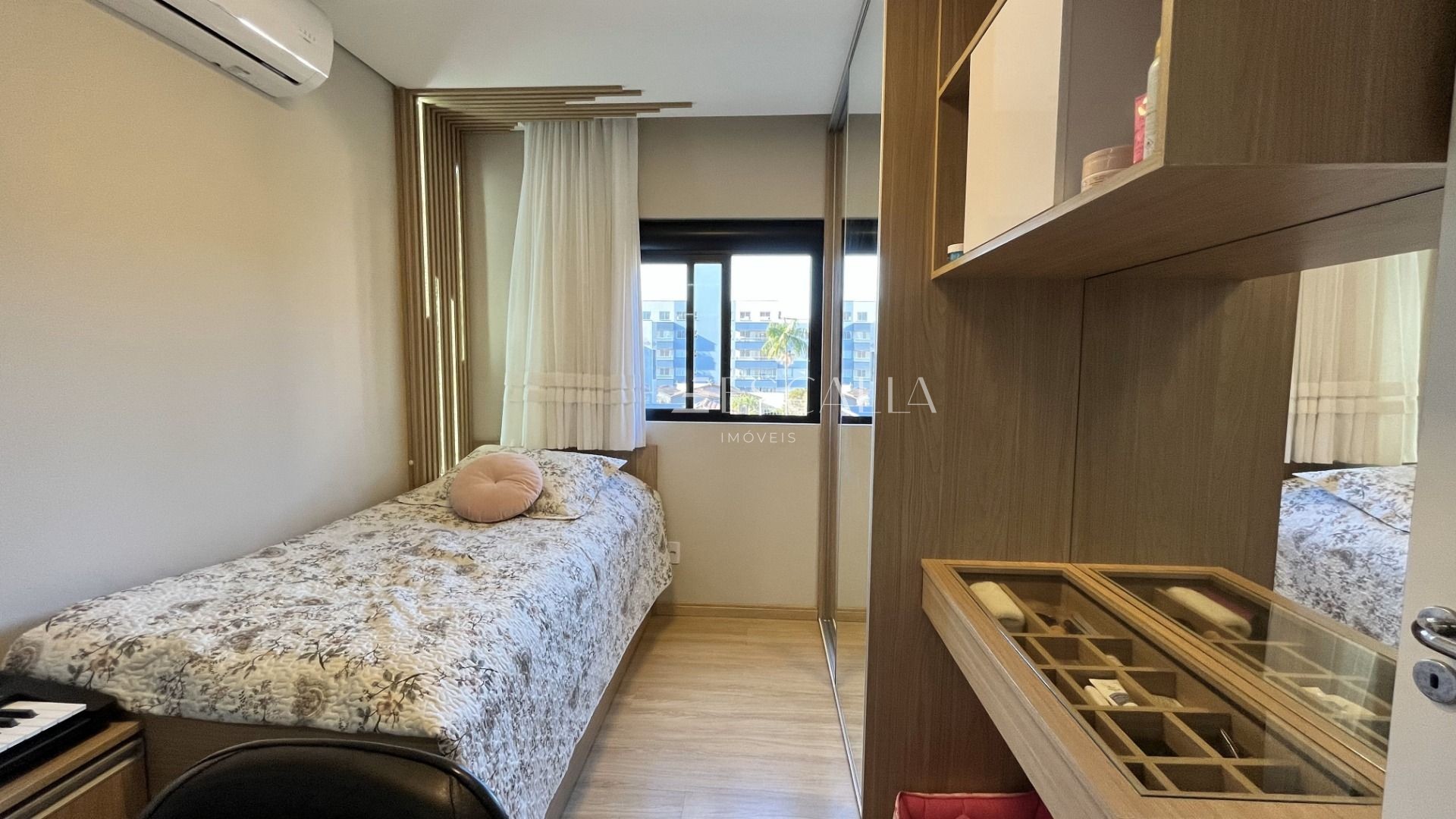 Os quartos são espaçosos, proporcionando privacidade e tranquilidade. Além disso, a suíte é elegante e conta com um banheiro privativo, oferecendo ainda mais comodidade aos moradores.