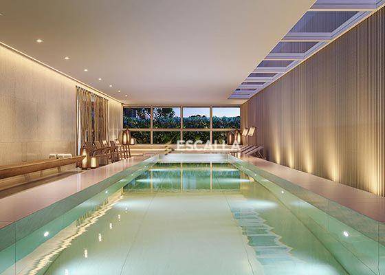 Piscina coberta aquecida com spa;
