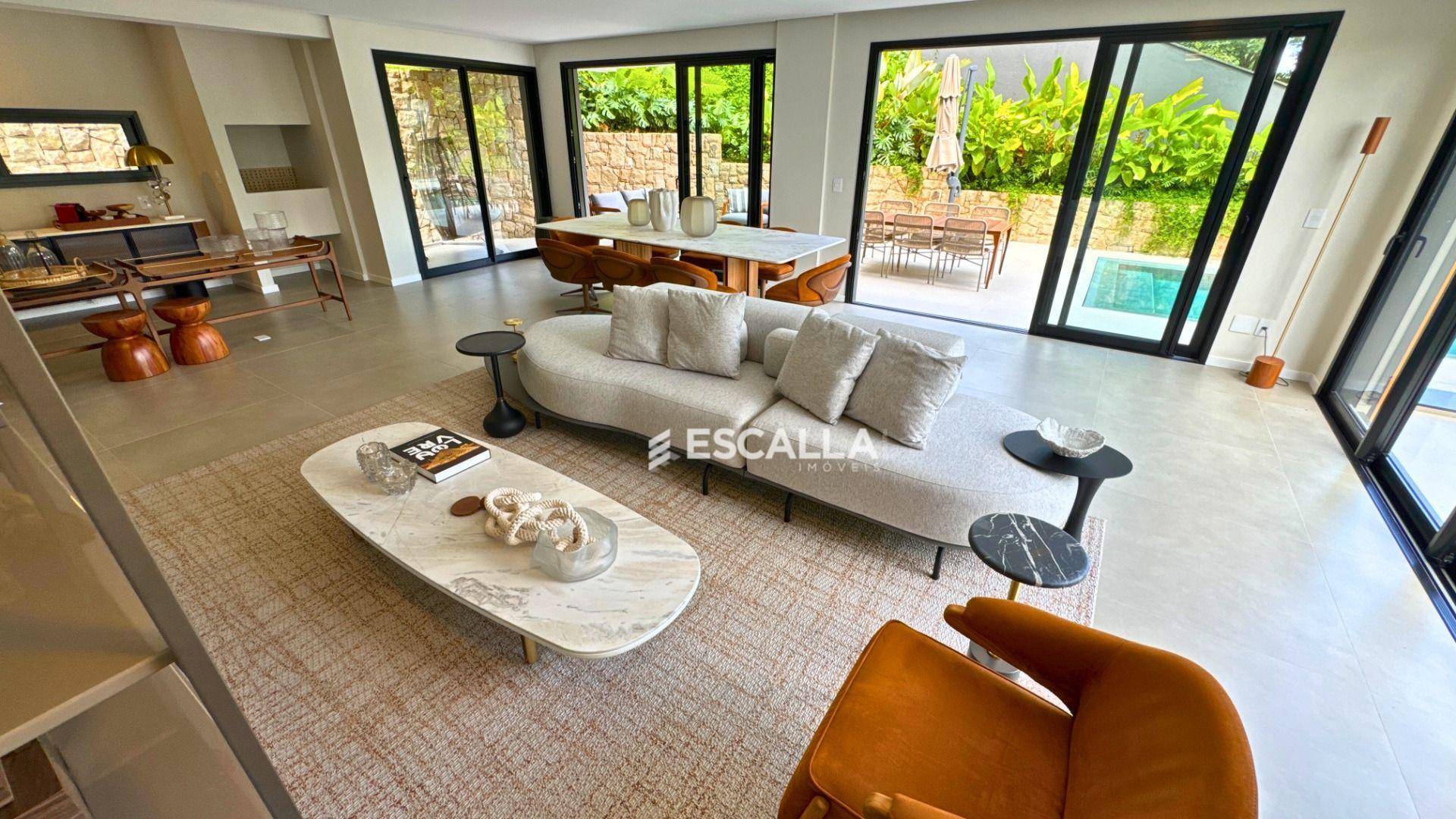 A casa é composta por 3 suítes, entre elas uma máster, sala de estar, sala de jantar, cozinha, área de serviço, adega, elevador privativo, área grill e uma belíssima área externa com piscina.