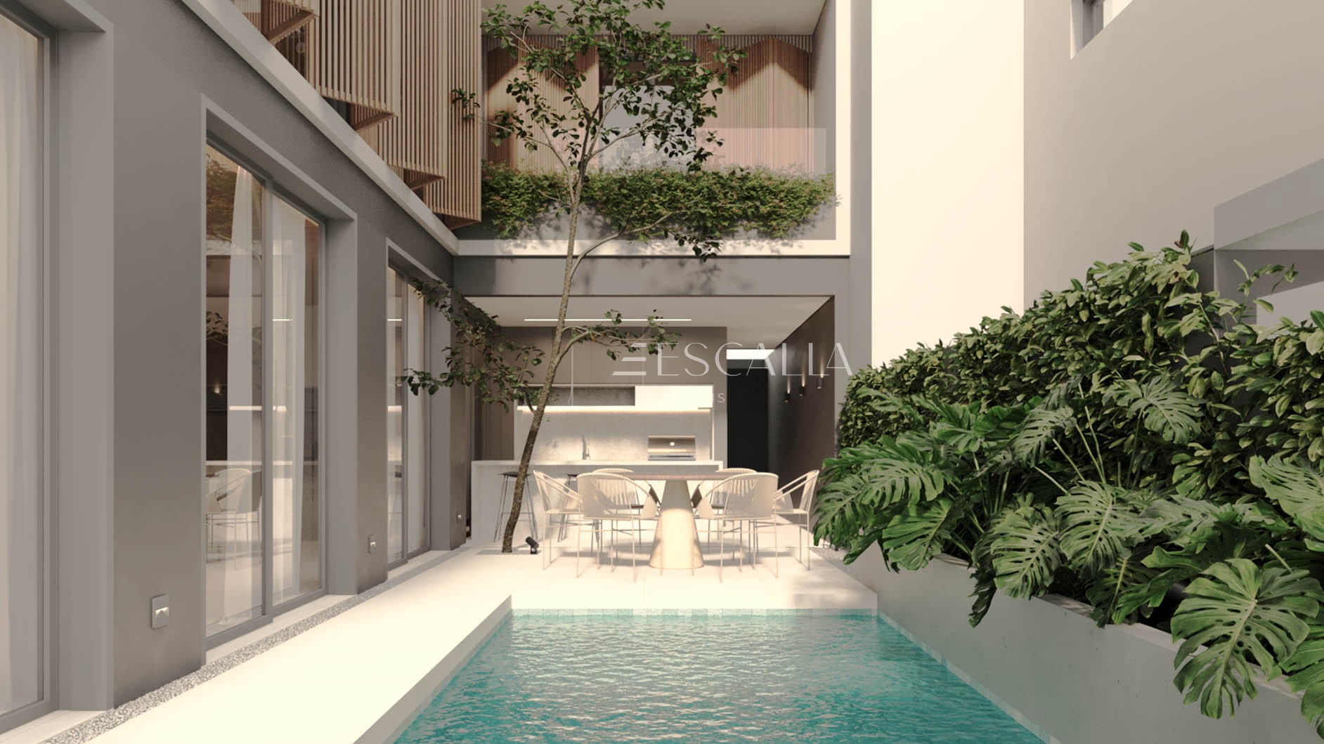 Com casas de 380 m² de área privativa, o empreendimento combina arquitetura contemporânea, materiais nobres e soluções que privilegiam conforto, iluminação natural e integração entre os ambientes, resultando em residências funcionais e atemporais.