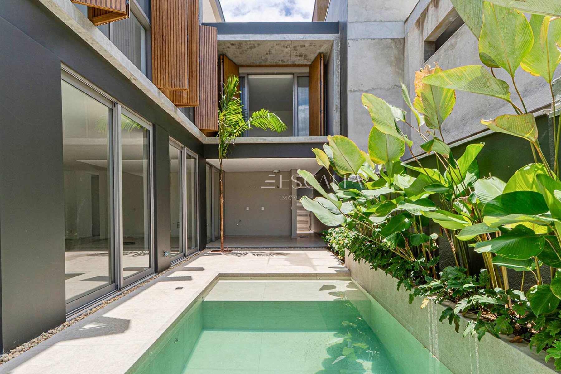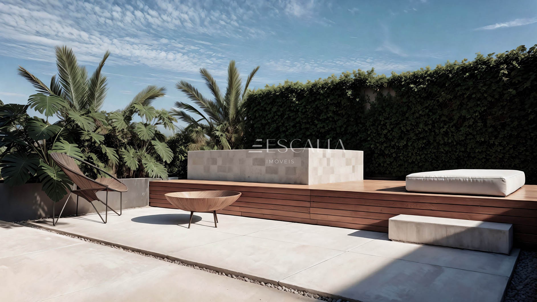As residências apresentam arquitetura contemporânea e design moderno, com alto padrão construtivo e acabamentos selecionados, como concreto aparente, pedra natural e esquadrias de alumínio piso-teto, que valorizam estética, durabilidade e desempenho térmico.