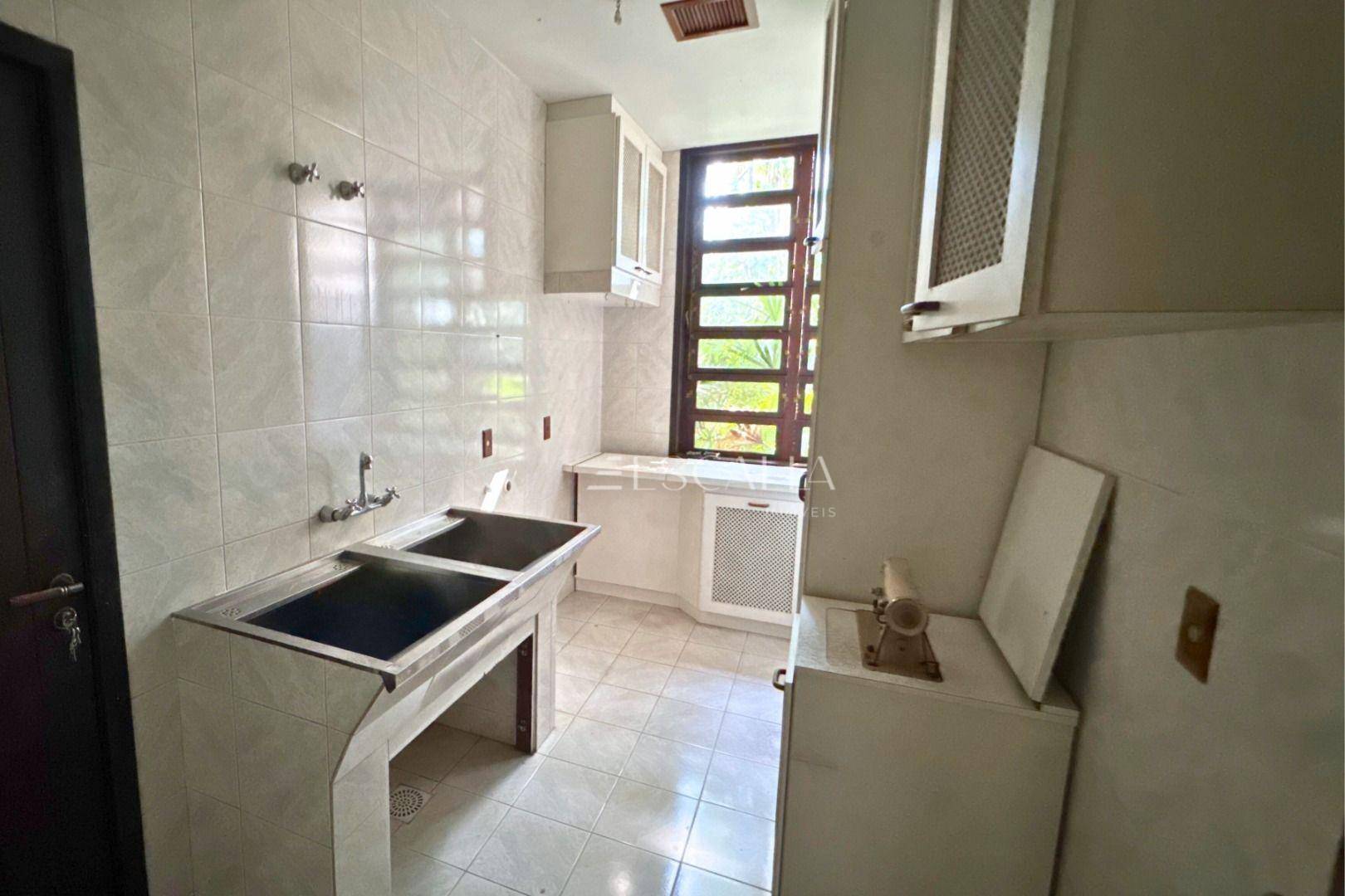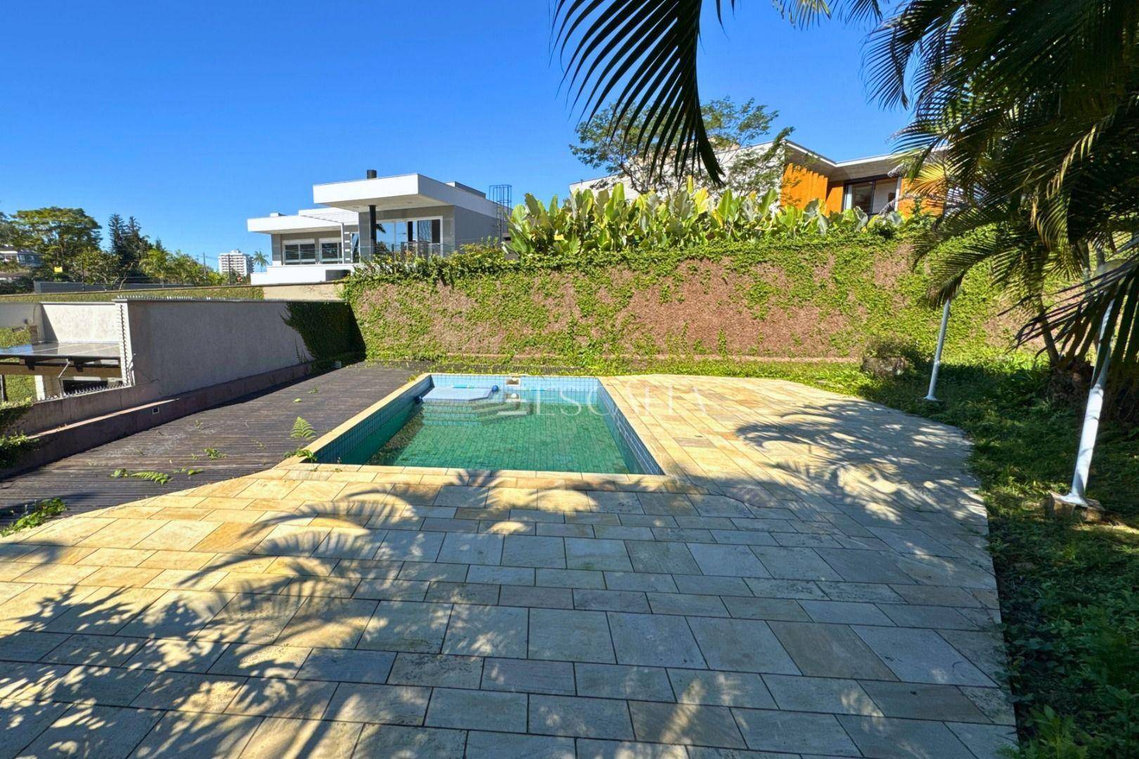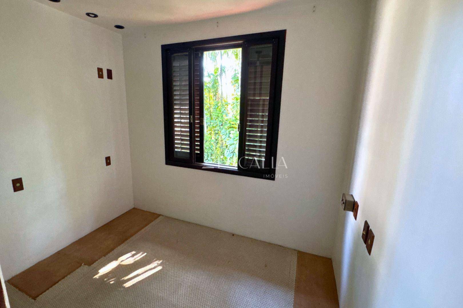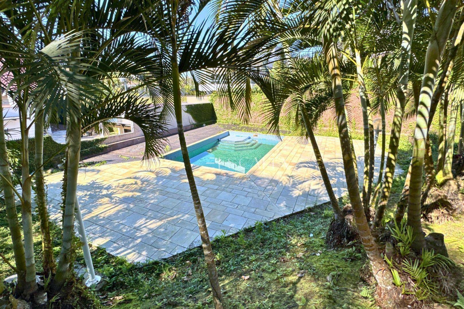 Piso térreo: duas amplas salas com lareira, lavabo, sala de festas com churrasqueira e adega, mezanino, cozinha completa, lavanderia com banheiro, quarto de empregada e garagem para 4 carros com 2 quartos e despensa.